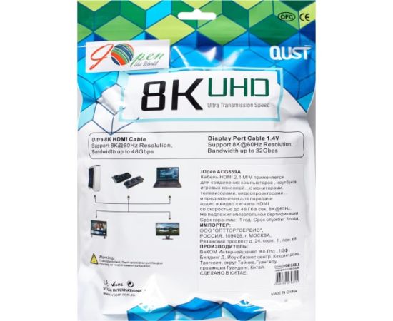 HDMI 2.1 кабель сверхскоростной AOpen/Qust 8K 60Hz 5 метров оплетка ACG859A-5.0
