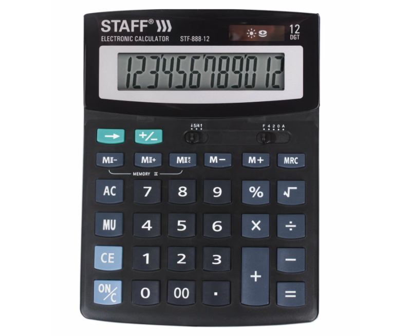 Простой в использовании и точный в расчётах настольный калькулятор STAFF STF-888-12 выполняет все необходимые вычисления на работе и дома. Кнопки нажимаются легко и тихо, позволяя работать с максимальным комфортом.