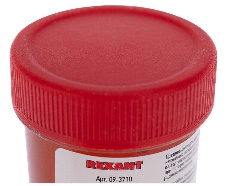Канифоль сосновая марки А 20 г REXANT предназначена для удаления тонких и нестойких оксидов с поверхности под пайку, улучшения растекания жидкого припоя при пайке печатных плат и радиокомпонентов.