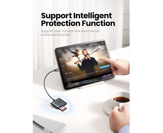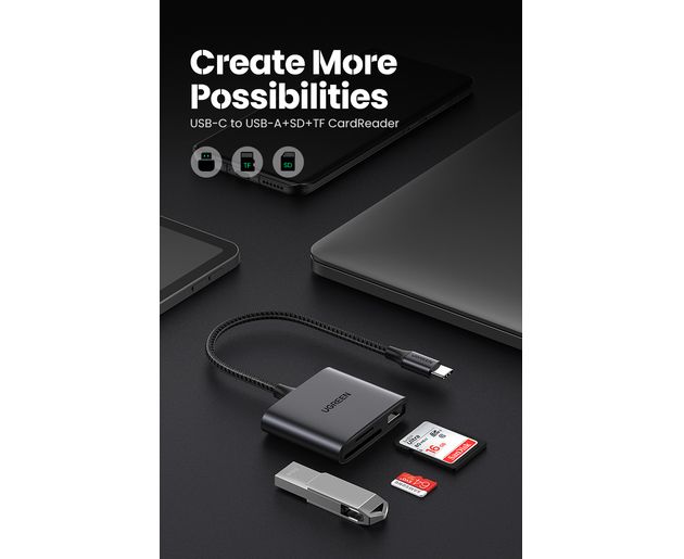 Кардридер UGREEN CM387 80798 USB-C to SD/TF+USB 2.0 Memory Card Reader space gray