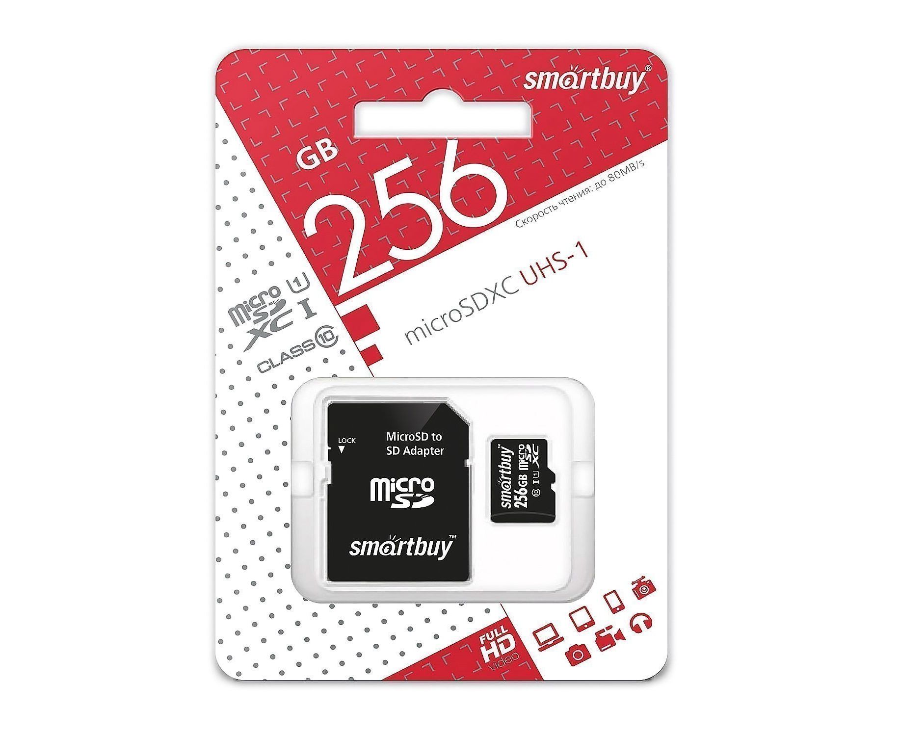 Карта флэш-памяти MicroSD 256 Гб Smart Buy +SD адаптер (class 10) UHC-1 (125646)