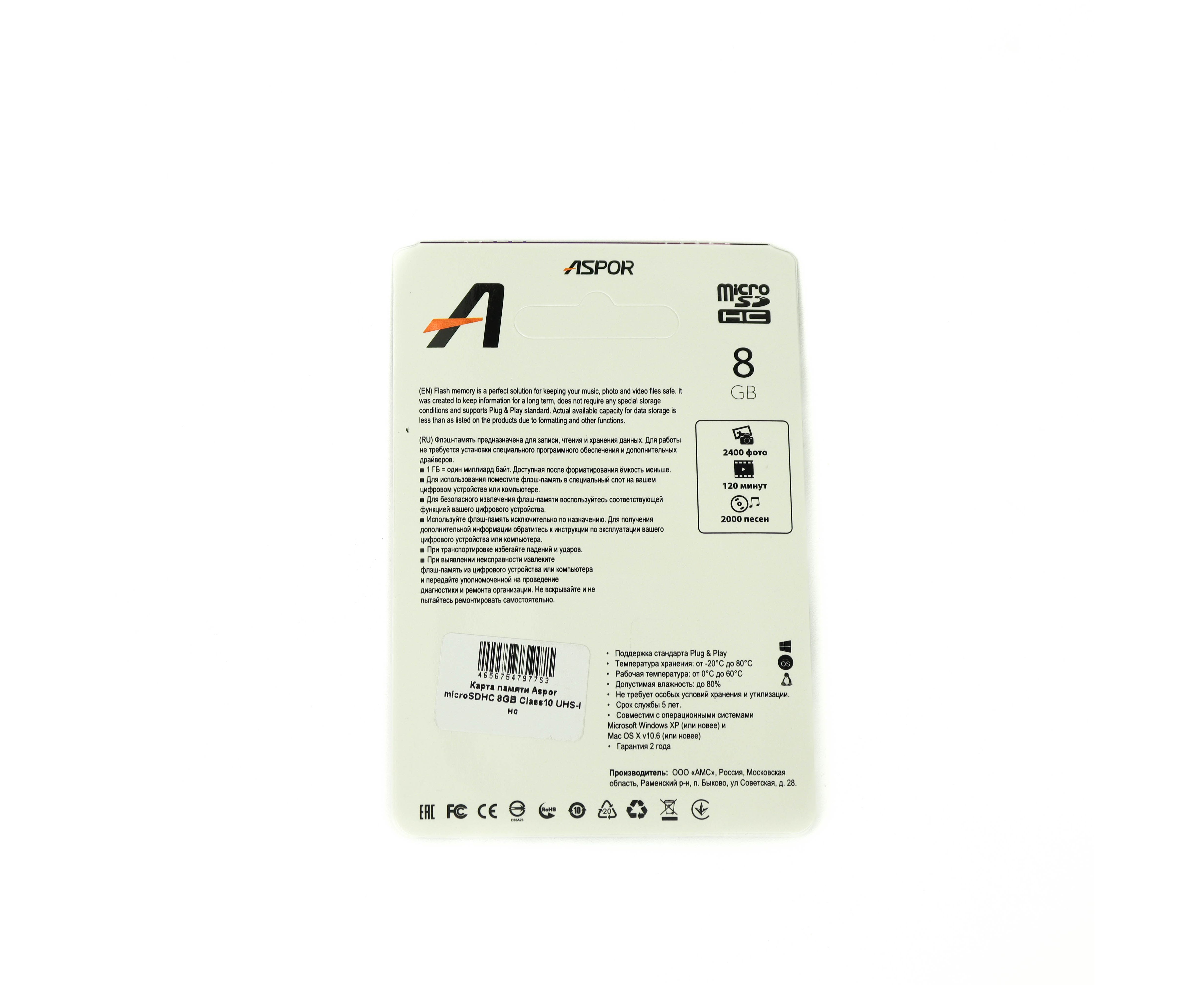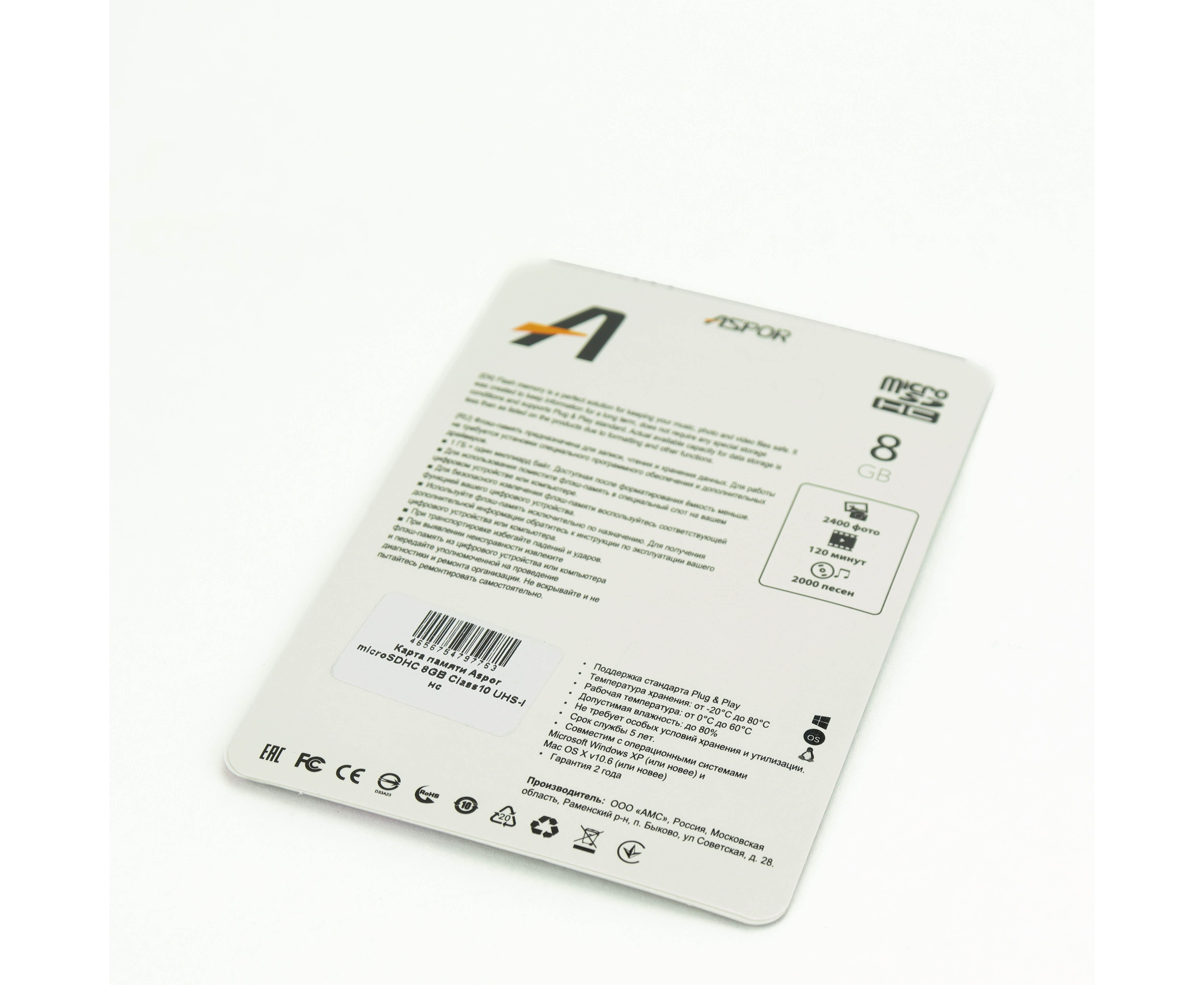 Карта памяти Aspor microSDHC 8GB Class10 UHS-I нс