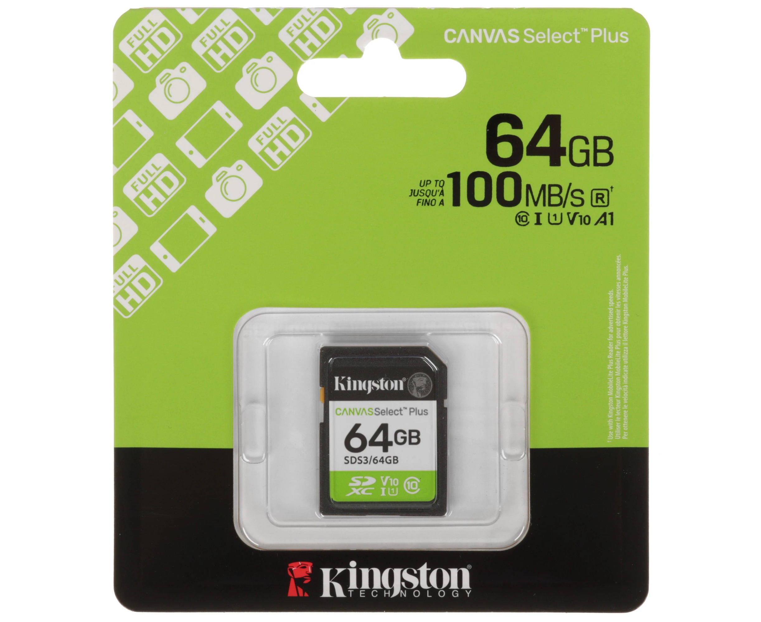 Карта памяти Kingston Canvas Select Plus SDS3/64GB SDXC 64GB V10 w/o adapter