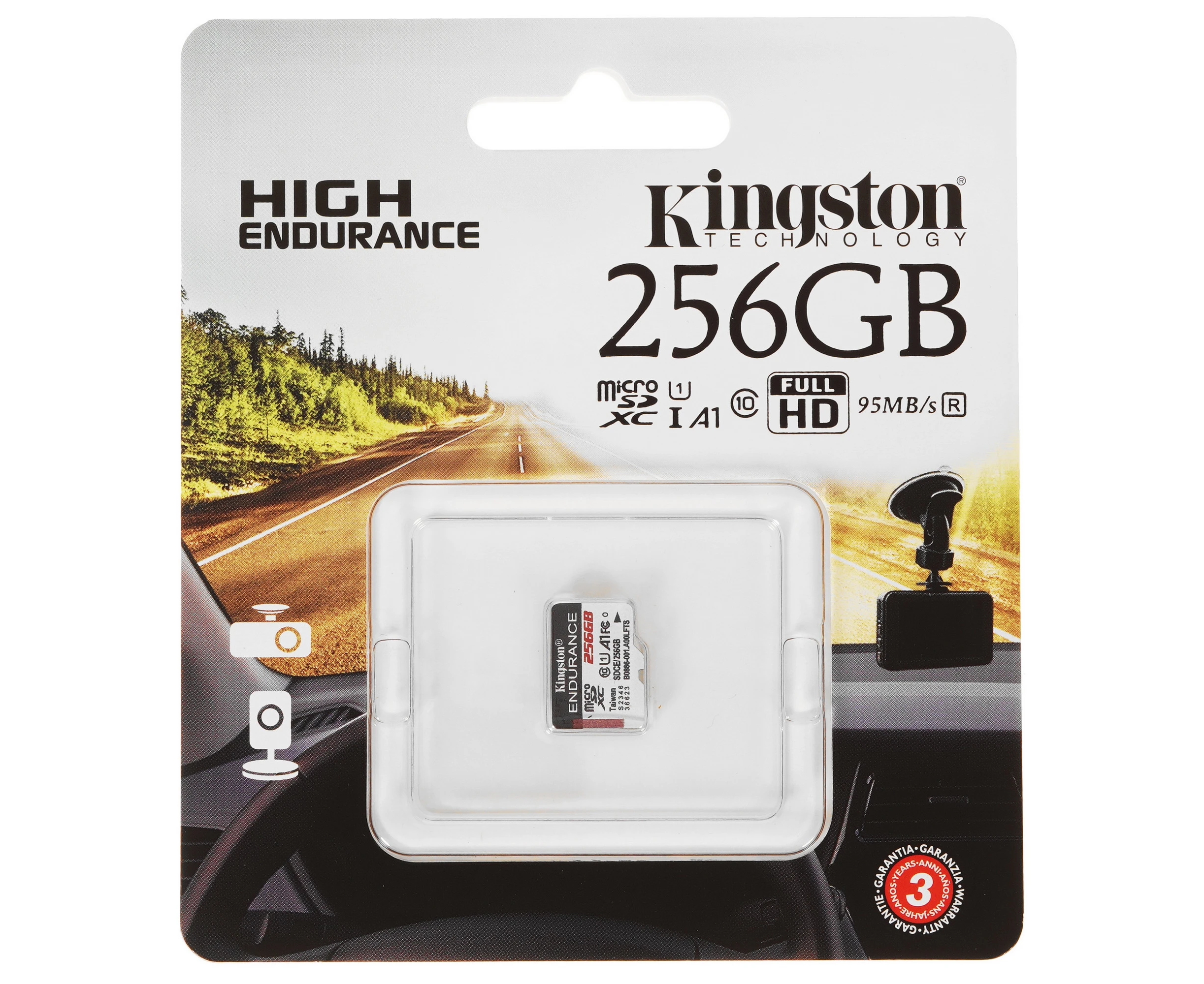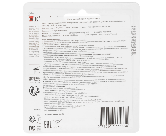 Карта памяти Kingston High Endurance SDXC 256 ГБ [SDCE/256GB] адаптирована для использования в устройствах с интенсивной записью: камеры видеонаблюдения, видеорегистраторы, портативные камеры. Она соответствует стандартам A1, Class 10 и UHS Class 1. Карта памяти способна записывать видеоконтент в разрешении FullHD со скоростью до 45 Мбайт/с. Для хранения файлов предусмотрено 256 ГБ свободного пространства. Карта памяти Kingston High Endurance устойчива к перепадам температуры, ударам, рентгеновским лучам, воздействию влаги и воды.