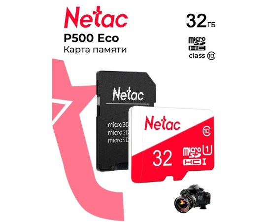Карта памяти Netac P500 Eco (NT02P500ECO-032G-R) MicroSDHC 32GB C10 с адаптером