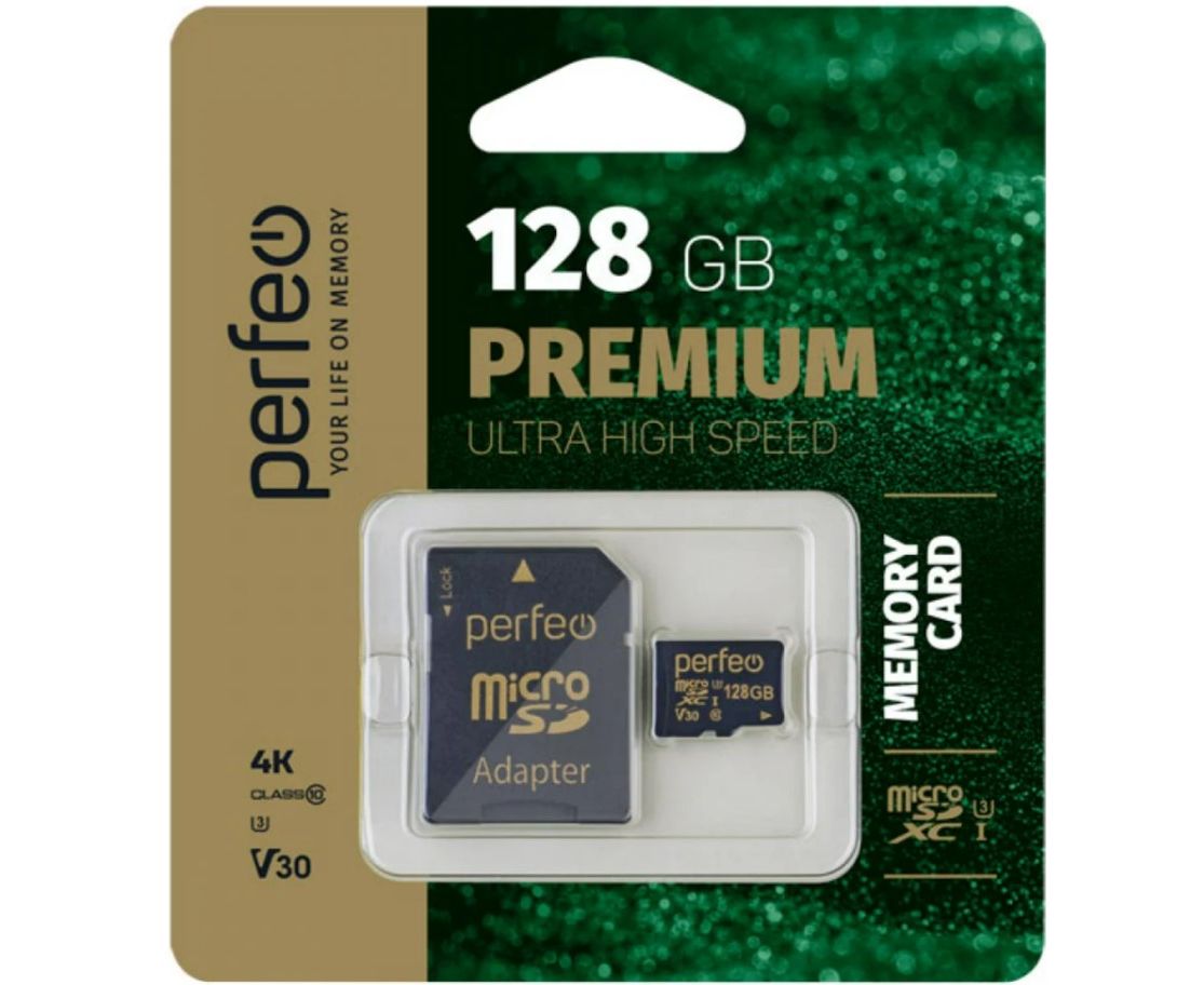 Карта памяти Perfeo microSDXC 128GB High-Capacity (Class 10) UHS-3 V30, (Арт. PF128GMCSX10V30A)