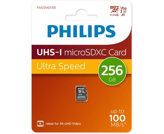 Карта памяти PHILIPS FM25MD55B/97 256GB High Speed microSDHC Class UHS-I U3, V30, A1, 100MB/s