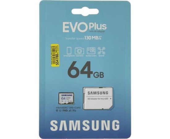 Карта памяти Samsung Evo Plus (MB-MC64SA/EU) 64GB microSDXC Class 10, UHS-I, (SD адаптер) 160MB/s