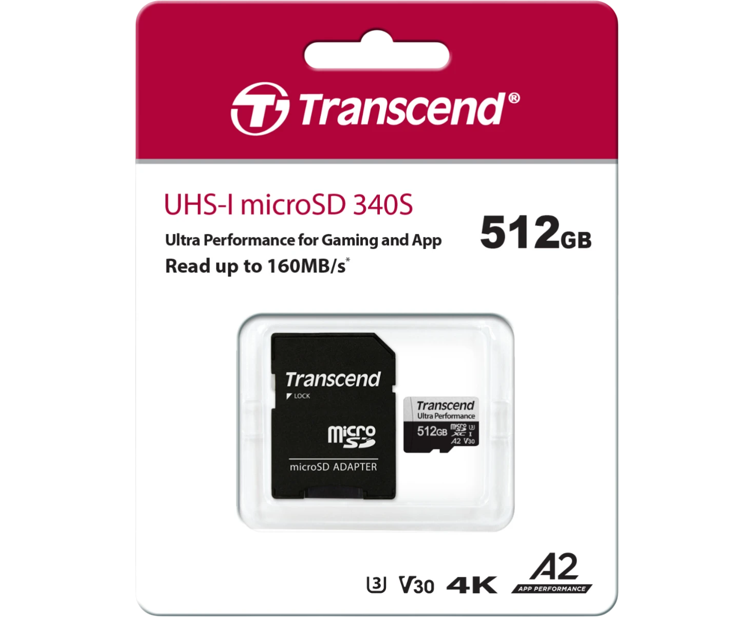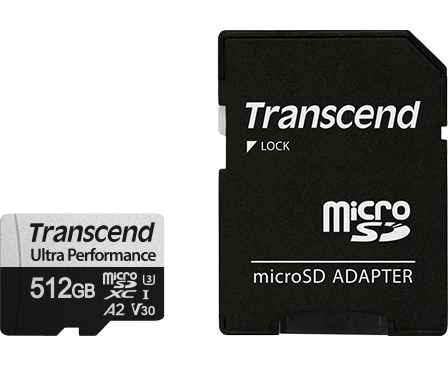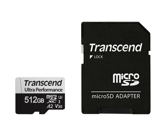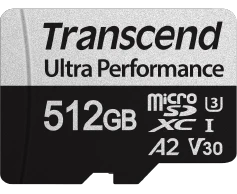 Карта памяти Transcend 340S SDmicro, 512 Гб, (TS512GUSD340S) UHS-I Class U3 V30 A2, с адаптером