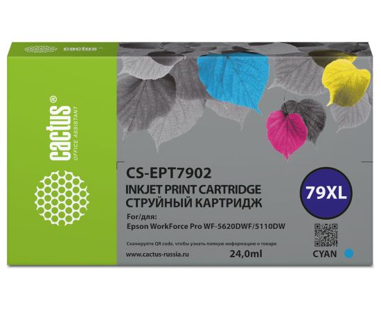 Картридж Cactus 79XL (CS-EPT7902) струйный голубой (24мл) для Epson WorkForce WF-4630 Pro/WF-4640 Pro/WF-5110 Pro