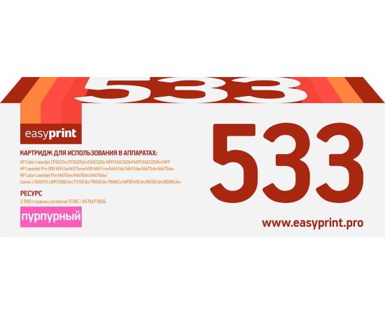 Картридж EasyPrint CC533A/413A/383A LH-533 U для HP CLJ CP2025/M451/M476/LBP7200Cdn 718M (2900 стр.) пурпурный, с чипом