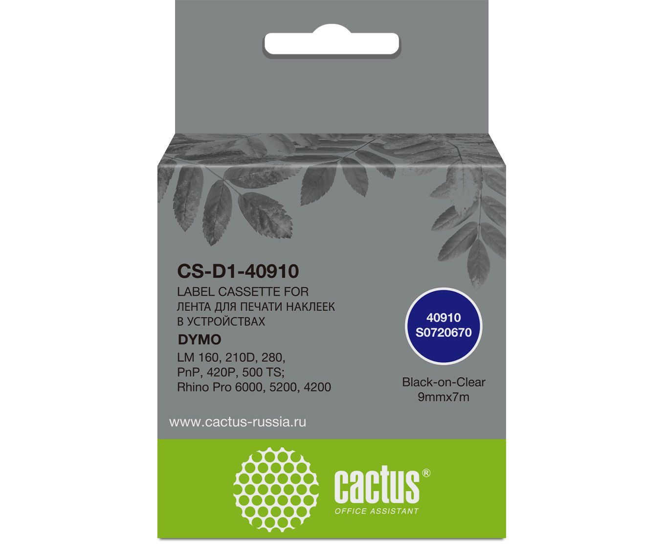Картридж ленточный Cactus CS-D1-40910 40910 для Dymo LM 160/210D/280/PnP/420P/500 TS; Rhino Pro 6000/5200/4200