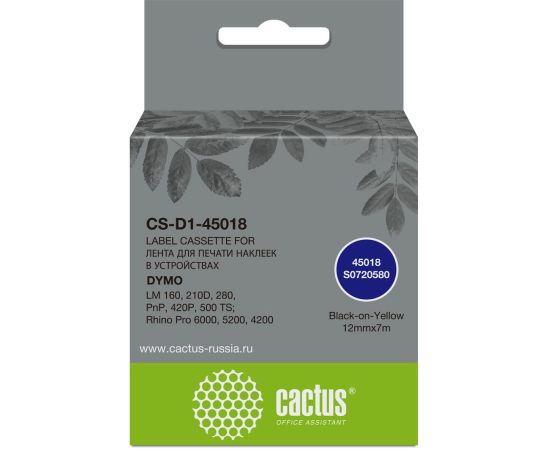 Картридж ленточный Cactus CS-D1-45018 45018 для Dymo LM 160/210D/280/PnP/420P/500 TS; Rhino Pro 6000/5200/4200