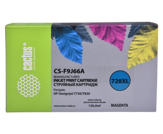 Картридж струйный Cactus 728XL CS-F9J66A пурпурный (130мл) для HP DJ T730/T830
