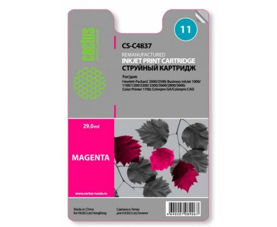 Картридж струйный Cactus CS-C4837 пурпурный для №11 HP 2000/2500/1000/1100/1200 (29ml)