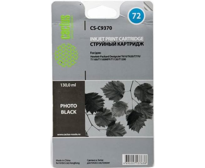 Картридж струйный Cactus CS-C9370 №72 черный (130мл) для HP DJ T610/T620/T770/T1100/T1100/T1120/T1200