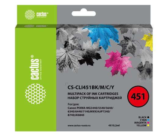 Картридж струйный Cactus CS-CLI451BK/M/C/Y черный/голубой/желтый/пурпурный набор (40.8мл) для Canon MG6340/5440/IP7240
