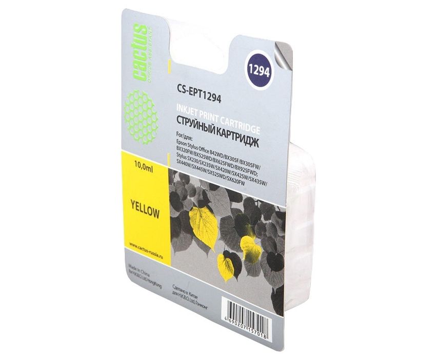 Картридж струйный Cactus CS-EPT1294 желтый для Epson Stylus Office B42/BX305/BX305F (10ml)
