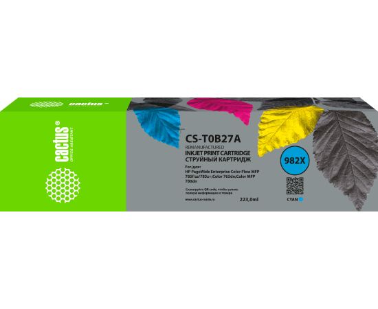 Картридж струйный Cactus CS-T0B27A 982X голубой 223мл для HP PageWide 765dn/780 Enterprise Color