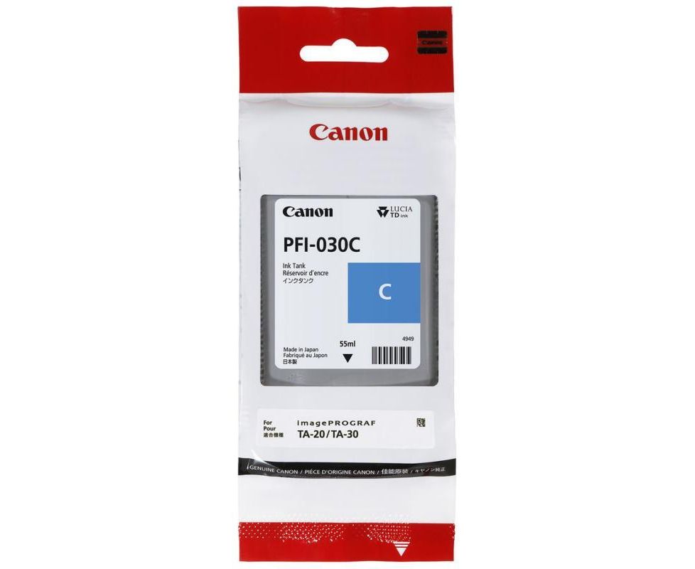 Картридж струйный Canon PFI-030C 3490C001АА голубой (55мл) для Canon imagePROGRAF TA-20, TA-30, TM-240, TM-340.
