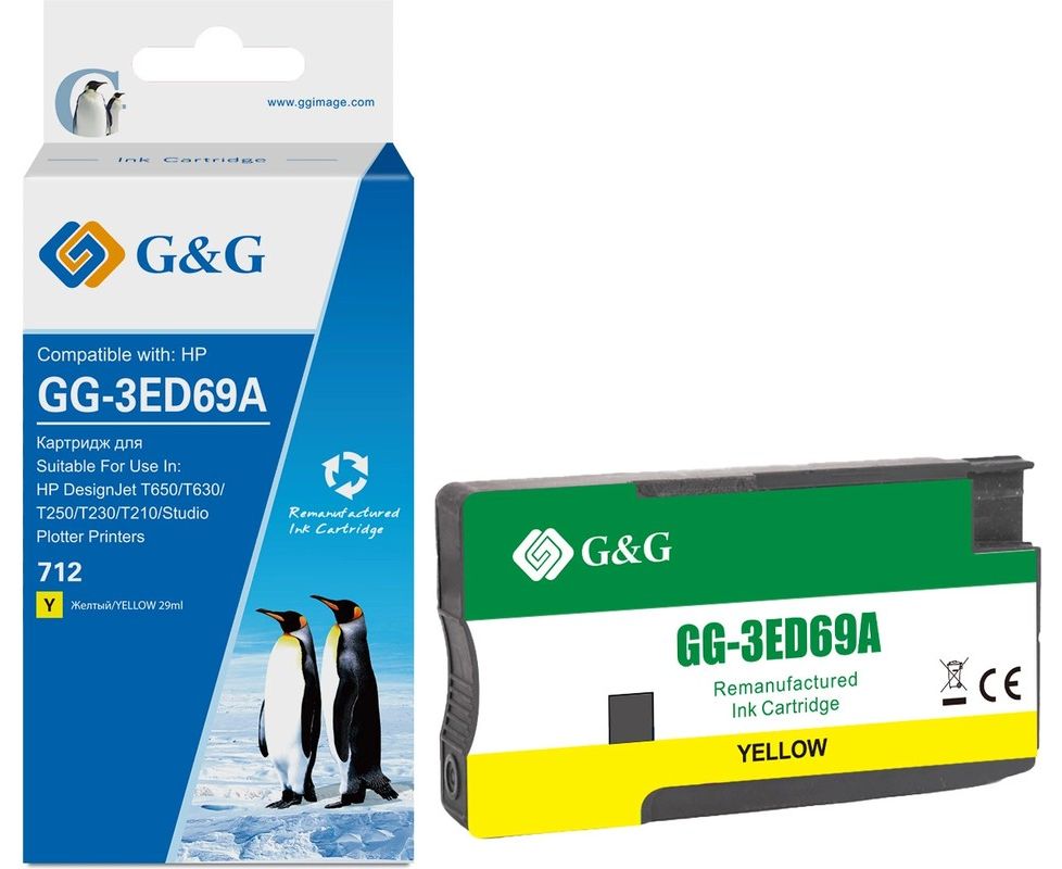 Картридж струйный G&G GG-3ED69A 712 желтый (29мл) для HP DesignJet T650/T630/T250/T230/T210/Studio Plotter Printers