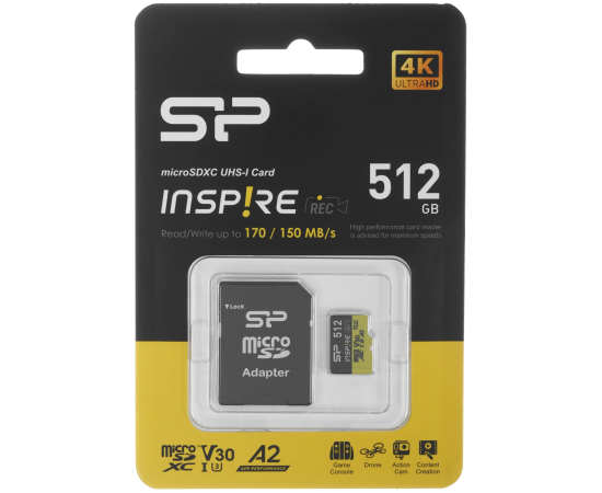 Карта памяти Silicon Power Inspire SP512GBSTXLA2V1NSP microSDXC 512GB V10 A2 + adapter