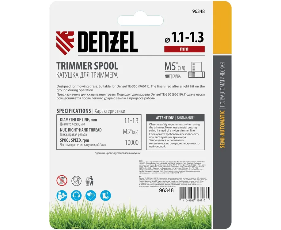Катушка для садовых триммеров Denzel 96348 d-1.3мм L-3м для TE-350