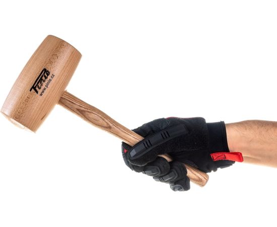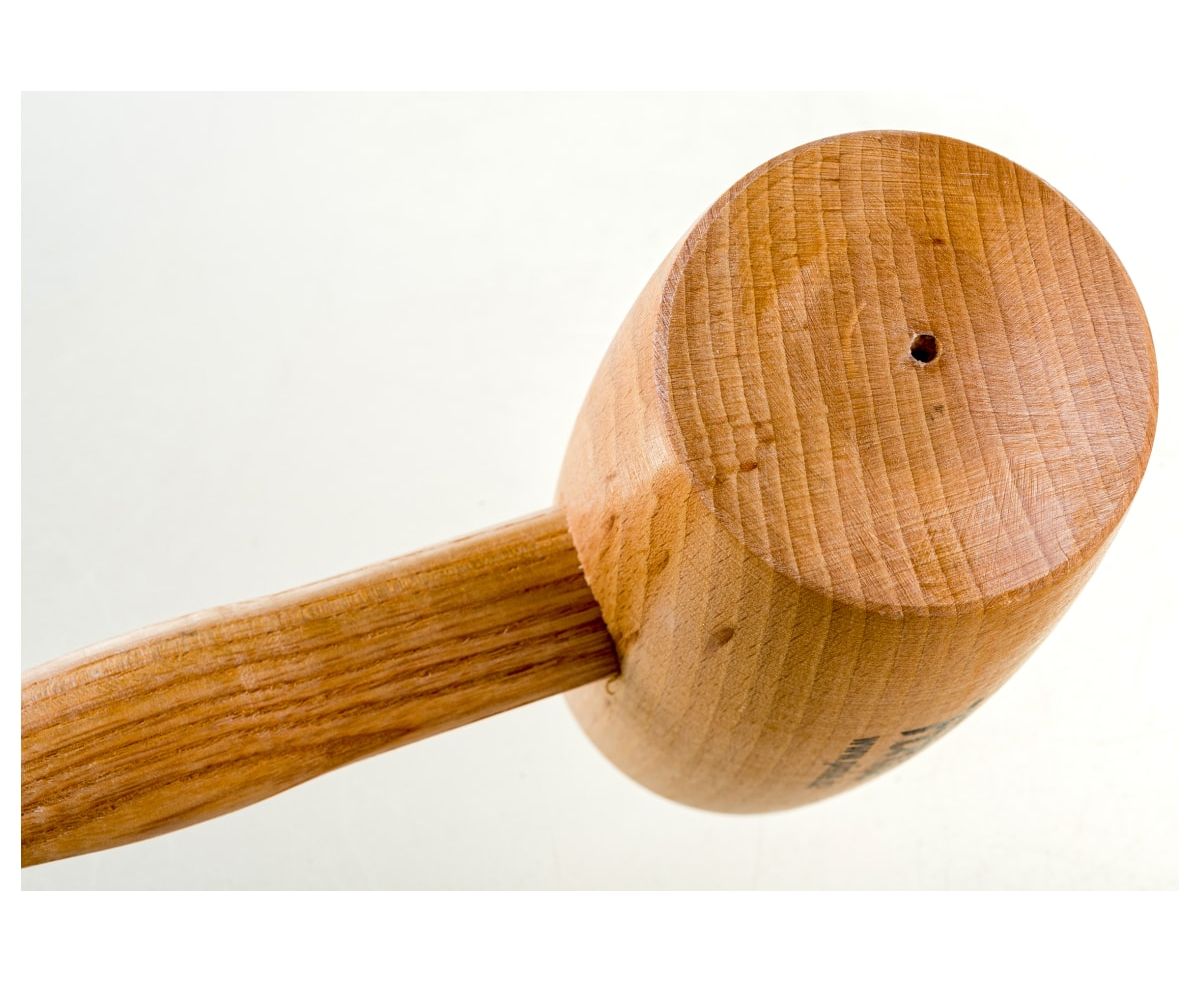 Деревянная круглая киянка обладает бойком круглой формы из высушенного бука. Инструмент используется совместно со стамесками. Рукоятка изготовлена из ясеня.