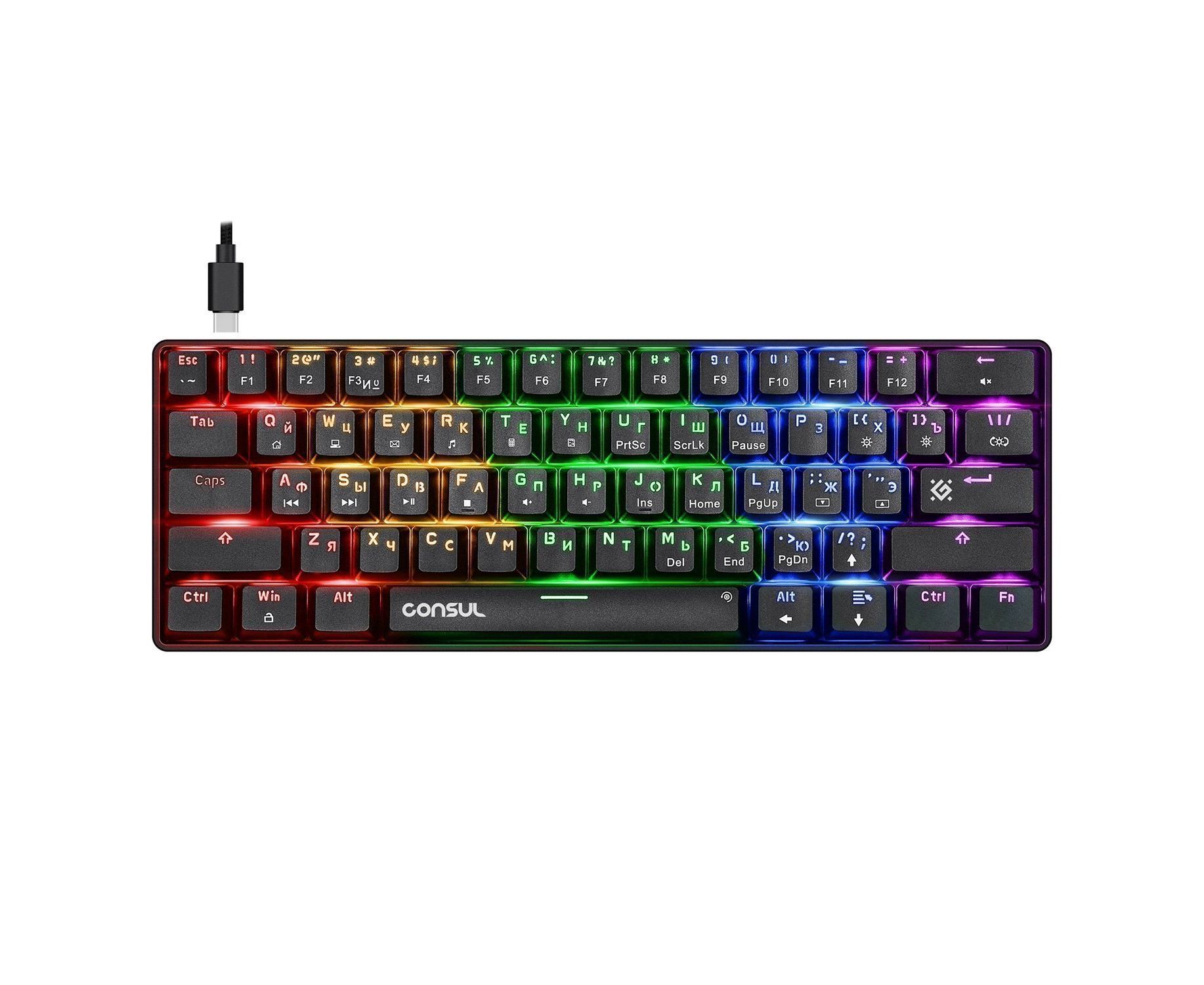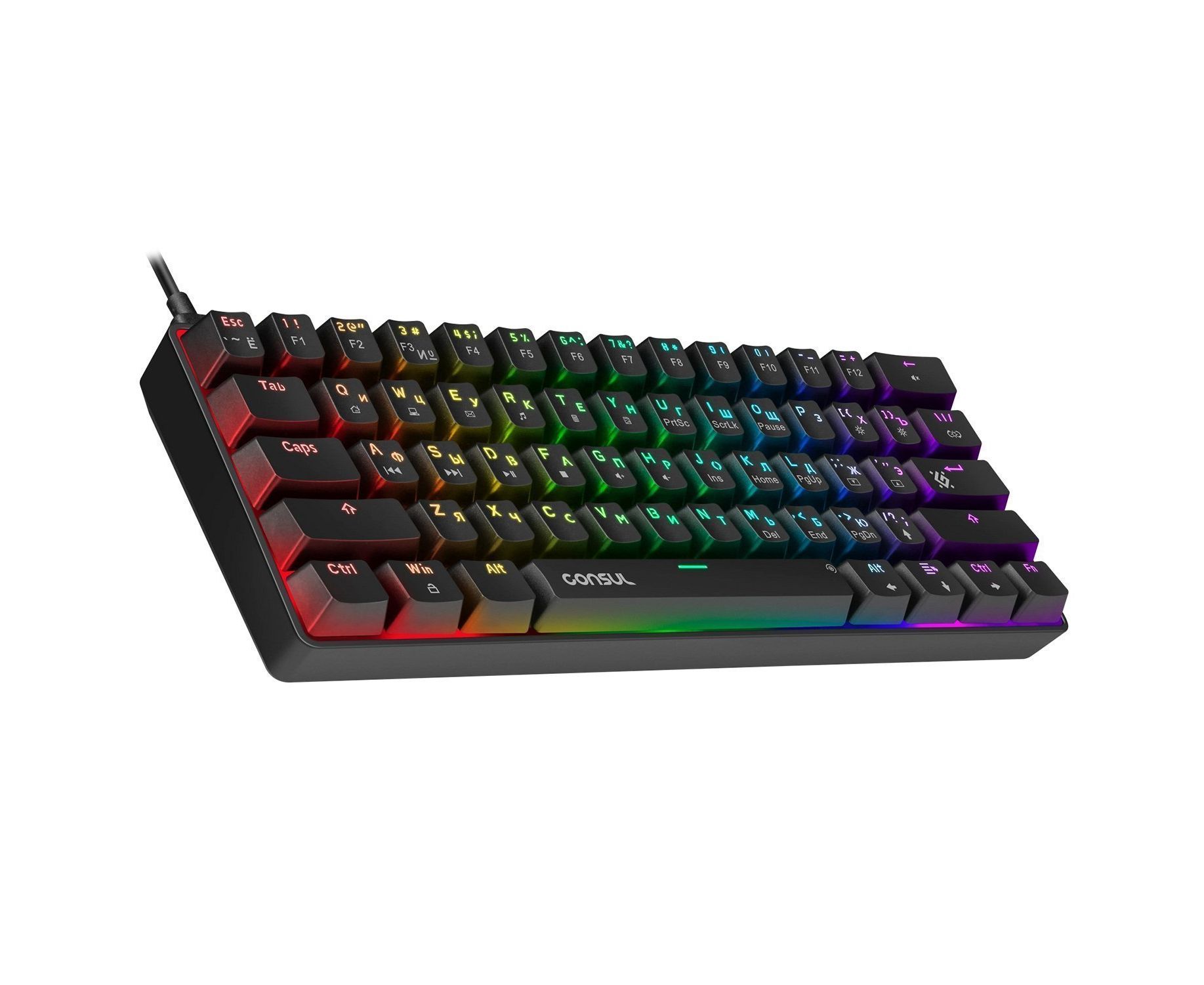 Ультракомпактная проводная механическая клавиатура на тихих красных свитчах Outemu. Ключевые достоинства модели: 19 режимов радужной подсветки, технология anti-ghost (все клавиши), возможность замены свитчей благодаря технологии Hot Swap. В комплект входят три дополнительных свитча, а также и пуллеры для кейкапов и свитчей.
