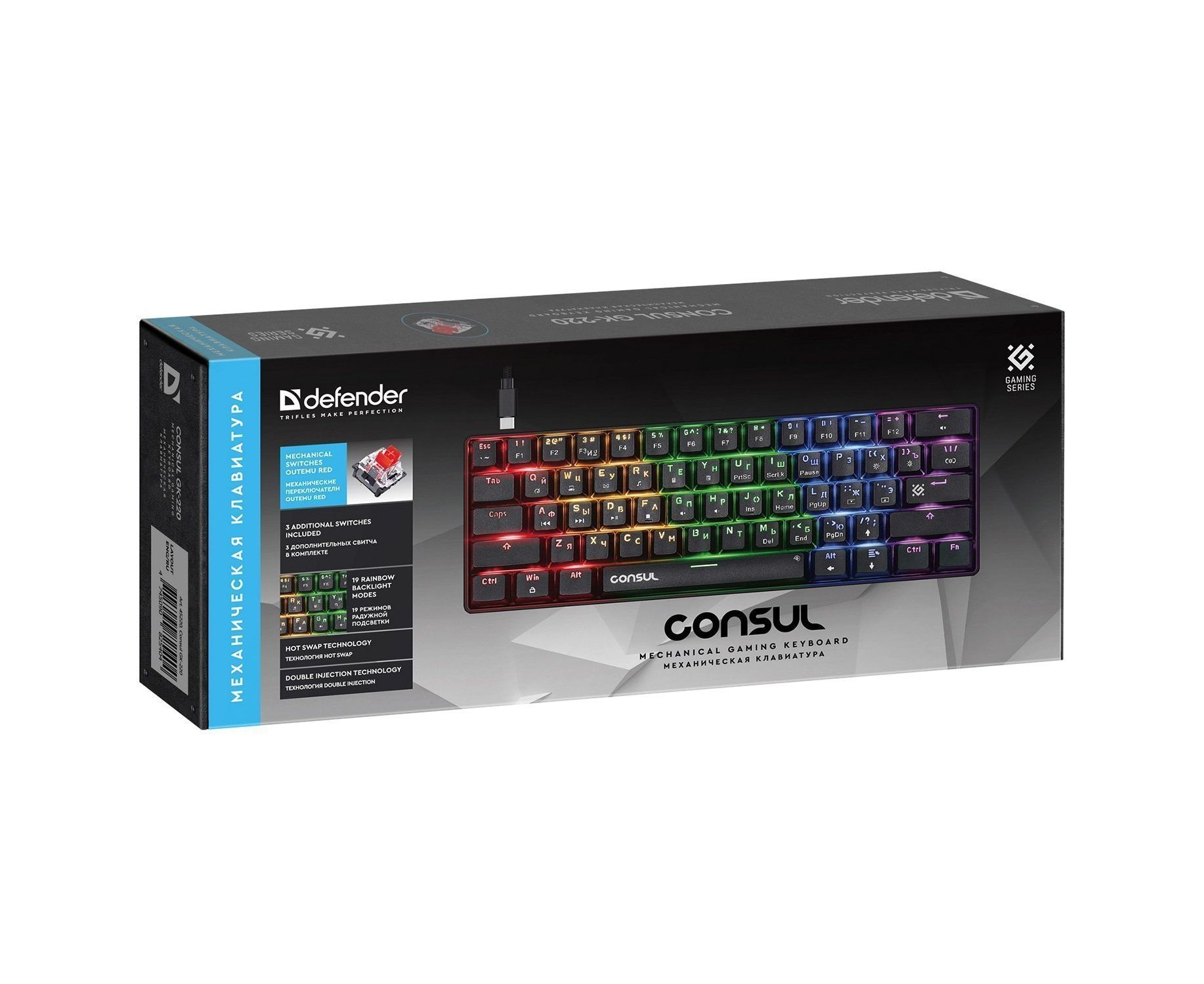 Клавиатура Defender Consul GK-220 игровая механическая (61кн, OUTEMU Red) (black) (237348)