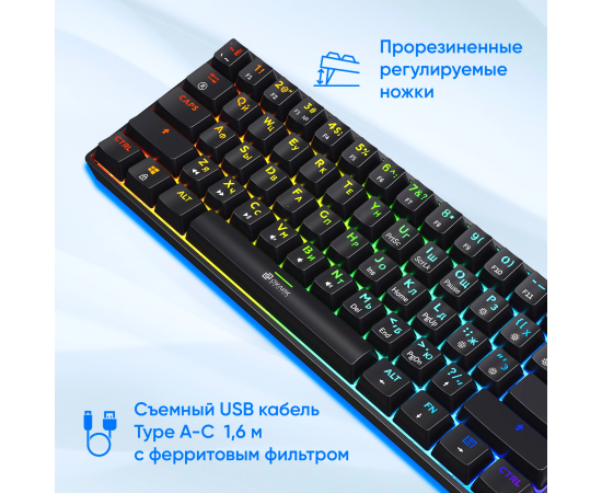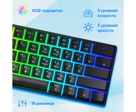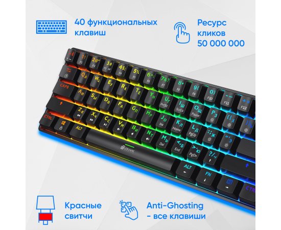 Компактная механическая клавиатура с реализованной технологией Hot-Swap. Яркая RGB-подсветка с возможностью настройки. Свитчи красные линейные (Huano)