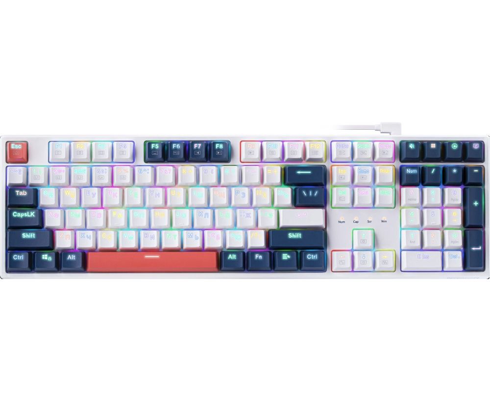 Клавиатура REDRAGON Whisper, RGB,бел-син-оранж.,тихая (71964)