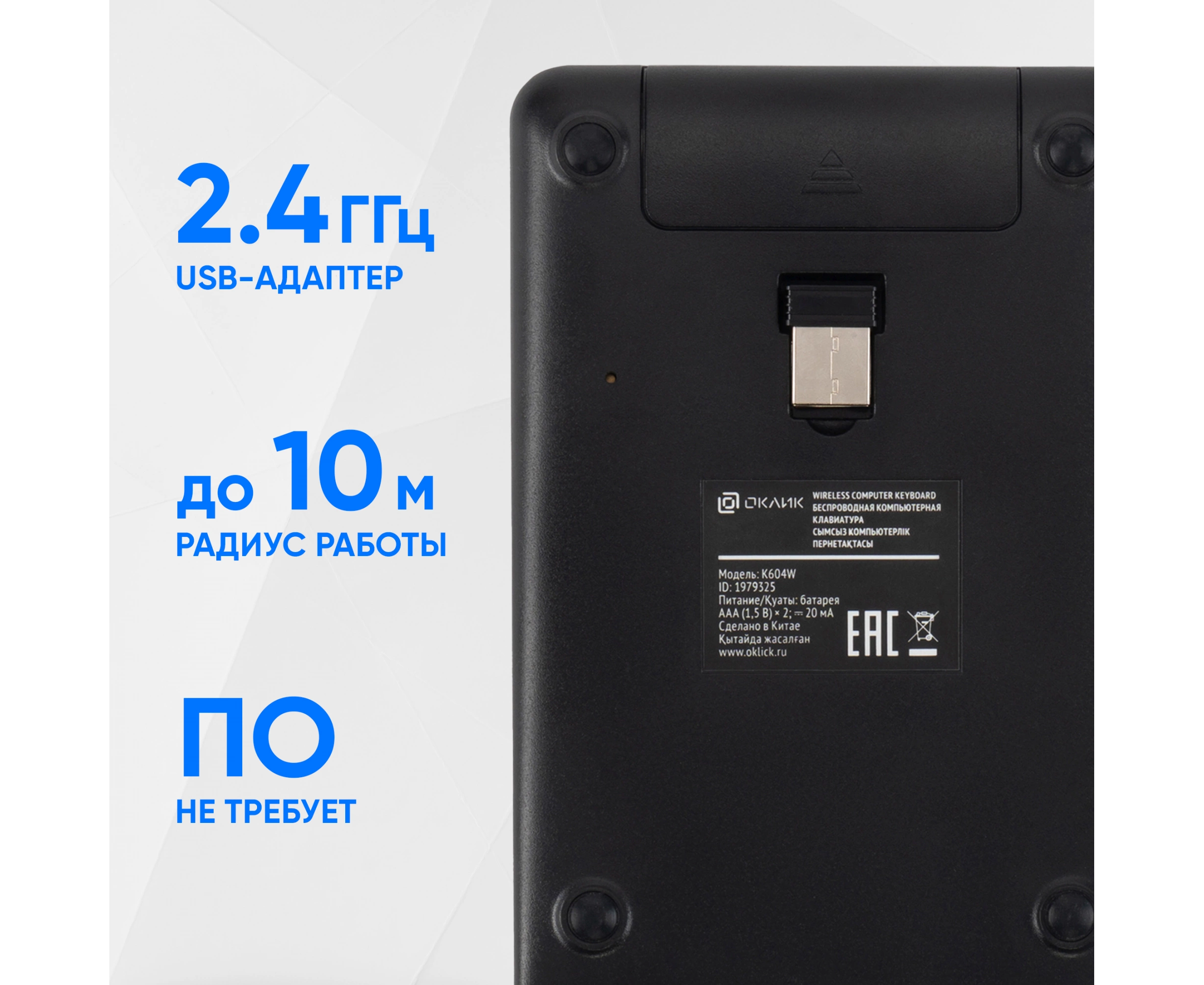 Клавиатура OKLICK K604W черный USB беспроводная slim