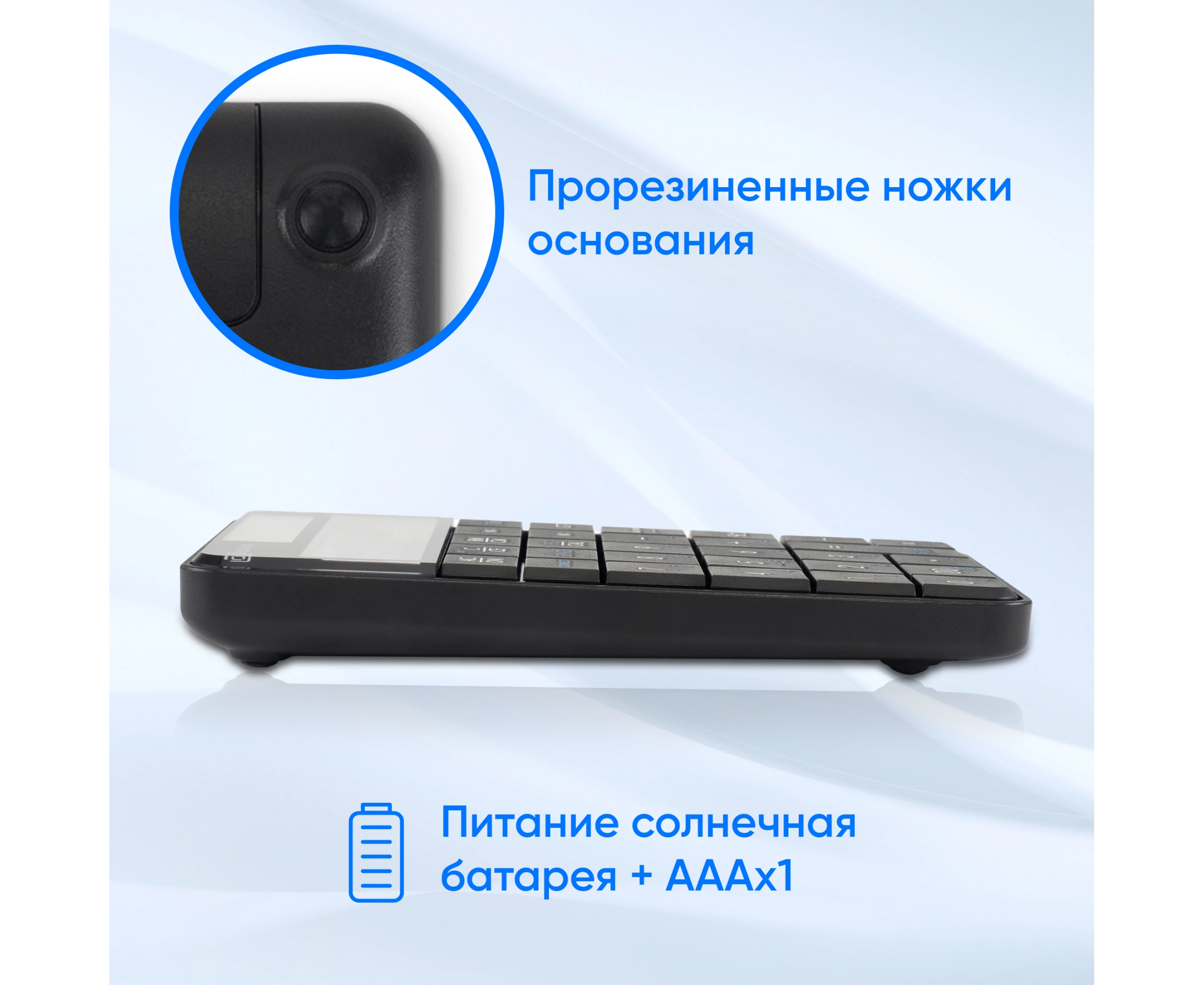 Беспроводной цифровой блок с встроенным калькулятором. Результаты вычеслений на калькуляторе, отправляются в ПК нажатием одной клавиши. Ножничный механизм клавиатуры обеспечивает надежную работу и отчетливое нажатие каждой клавиши.