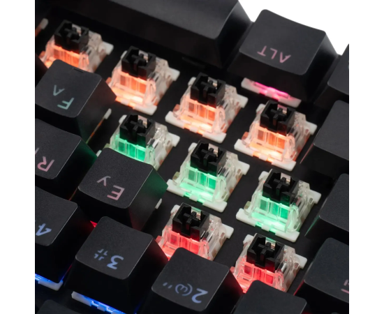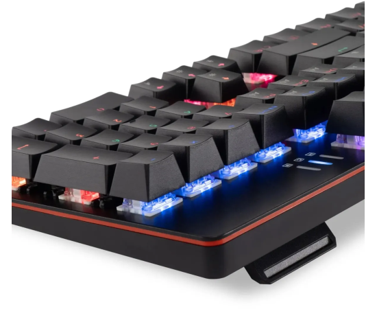 Механическая игровая 104-клавишная клавиатура Oklick 990G2 впечатляет солидным ресурсом в 50 млн нажатий. Модель оборудована синими свитчами: они отличаются четким тактильным откликом и слышимым щелчком. Мультимедийные клавиши Fn+F1-F12