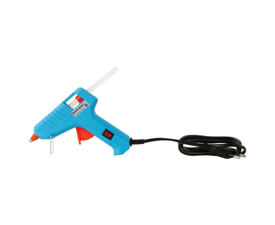 С его помощью можно склеить дерево, пластик, резину, кожу, стекло, металл, ткань, пенопласт, керамику, картон, бумагу, цветы и прочие материалы. Заправляется специальным клеевым стержнем диаметром 7 мм. Клеевой пистолет мощностью 15 Вт работает от сети и дополнительно имеет кнопку отключения, которая позволяет не выключать пистолет из розетки во время паузы в работе. Производительность 6 г/мин обеспечивает непрерывную подачу клея.