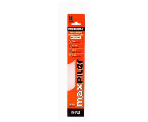 Клеевые стержни Maxpiler MGE-0720T (диаметр 7мм, длина 200мм, прозрачный, 8шт в уп, сильной фиксации)