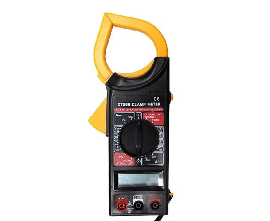 Клемметр ТЕК DT 266 61/10/225 - это "токовые клещи", предназначенные для определения величины изоляции (при наличии 500–вольтового измерителя изоляции), а также для измерения тока, напряжения, сопротивления. Устройство оснащено 3.5 разрядным ЖК дисплеем. Прибор имеет 3 входных разъёма, которые защищены от перегрузки. Габариты данного инструмента - 230x70x37 мм.