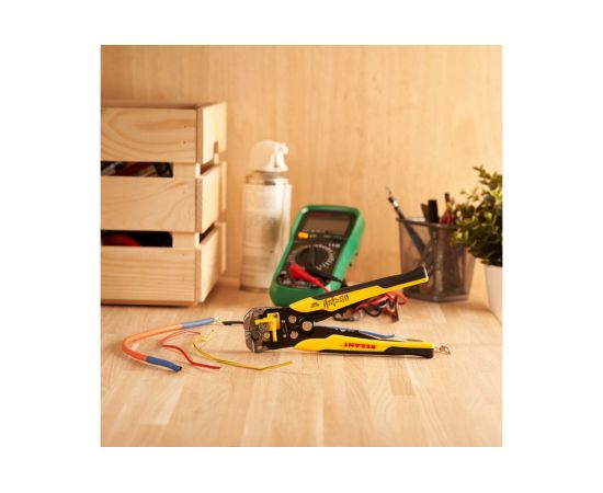 Инструмент REXANT HT-766 предназначен для обрезки проводов; зачистки внешней изоляции одножильного и многожильного кабеля; обжима изолированных и неизолированных наконечников; обжима контактов высоковольтных проводов зажигания. Корпус выполнен из качественной инструментальной стали. Эргономичные противоскользящие рукоятки с резиновыми вставками обеспечивают правильное расположение стриппера в руке и повышают уровень комфорта при работе. Предусмотрены ограничитель длины зачистки провода и возвратная пружина для обеспечения обратного хода рукояток. Регулятор усилия зажима провода позволяет оптимально настроить инструмент.
