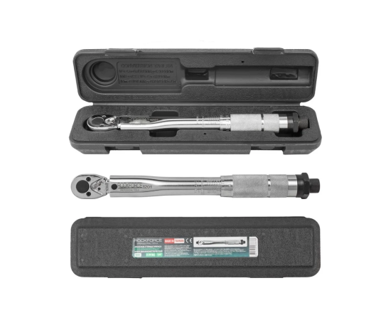 Динамометрический ключ щелчкового типа применяется в сфере ремонта автомобилей, а также различных узлов, механизмов и деталей, в промышленности, строительной сфере и др. Ключ обеспечивает полный контроль над усилием затяжки резьбовых соединений. Модель имеет простую и надёжную конструкцию. Шкала высечена на ключе, а индикатором достижения нужного усилия будет служить щелчок. Ключ обеспечивает высокую точность измерений.