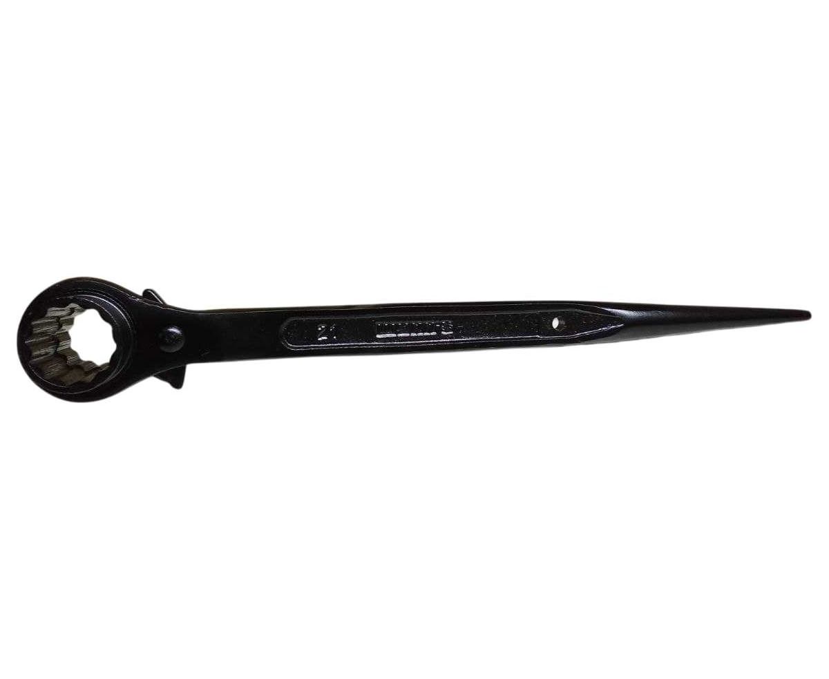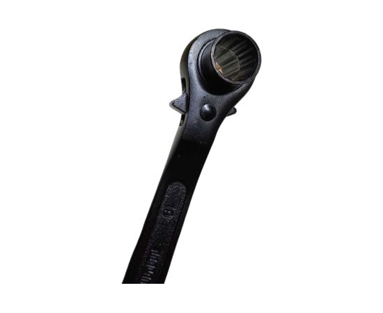 Ключ коликовый с трещоткой и переключателем представляет собой двусторонний инструмент для откручивания ступичных гаек. Ключ монтажный трещоточный подходит для бытового и профессионального использования - в гараже, автосервисах, мастерских. Торцевой двухсторонний ключ с трещоткой применяется для совмещения отверстий и завертывания гаек и болтов при монтаже сборных стальных конструкций, сборки резьбовых соединений технологического оборудования, трубопроводов и для ремонтных работ. Ключ имеет две рабочие 12-гранные головки с переключателем и с храповым механизмом.