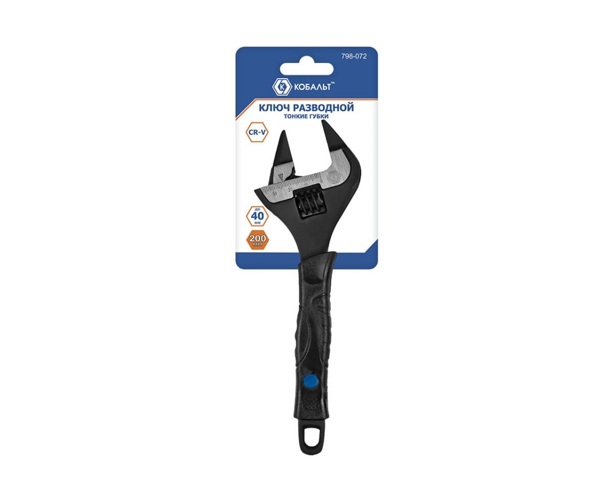 Ключ разводной КОБАЛЬТ (798-072) 200 мм, с тонкими губками, ширина захвата 40 мм, двухкомпонентная рукоятка CR-V