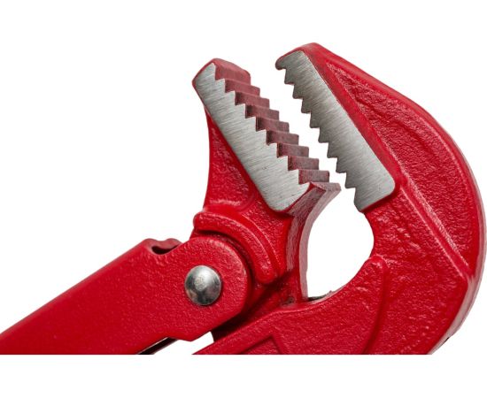 Трубный ключ (газовый, 90 градусов, тип L, инструментальная сталь, 1 дюйм, 300 мм) КУРС 70361 используется для эффективного зажима любого крепежа или труб диаметром до 25 мм (1"). Длинные рукоятки обеспечивают рычаг для уменьшения усилий вращения. Зазубренные губки полностью обхватывают объект.