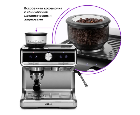 Кофемашина Kitfort КТ-789 серебристый
