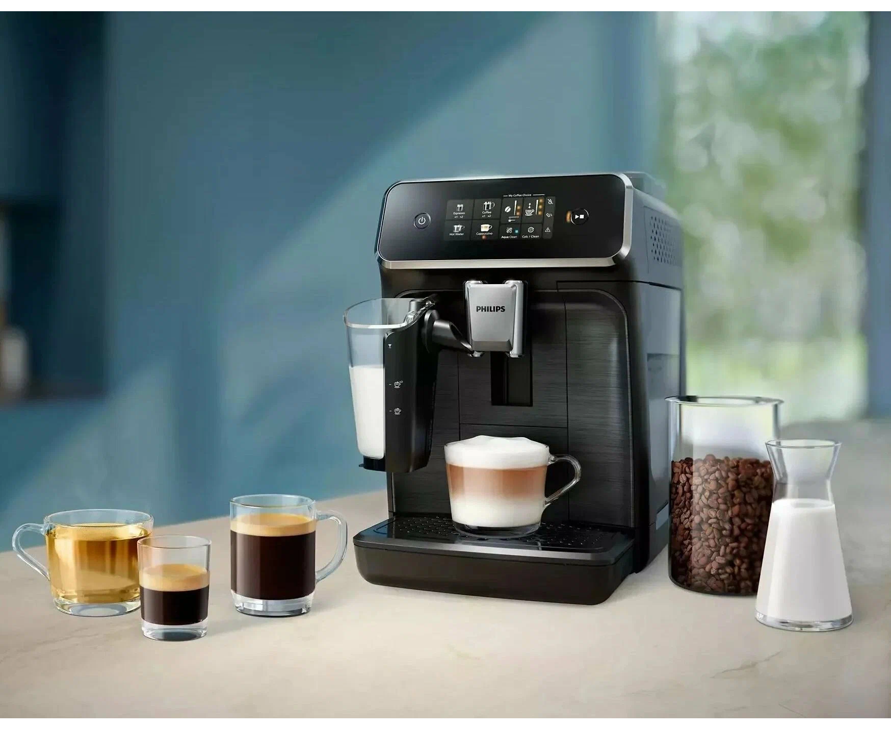 автоматическая декальцинация, одновременное приготовление двух чашек, подача горячей воды, программа автоматической очистки