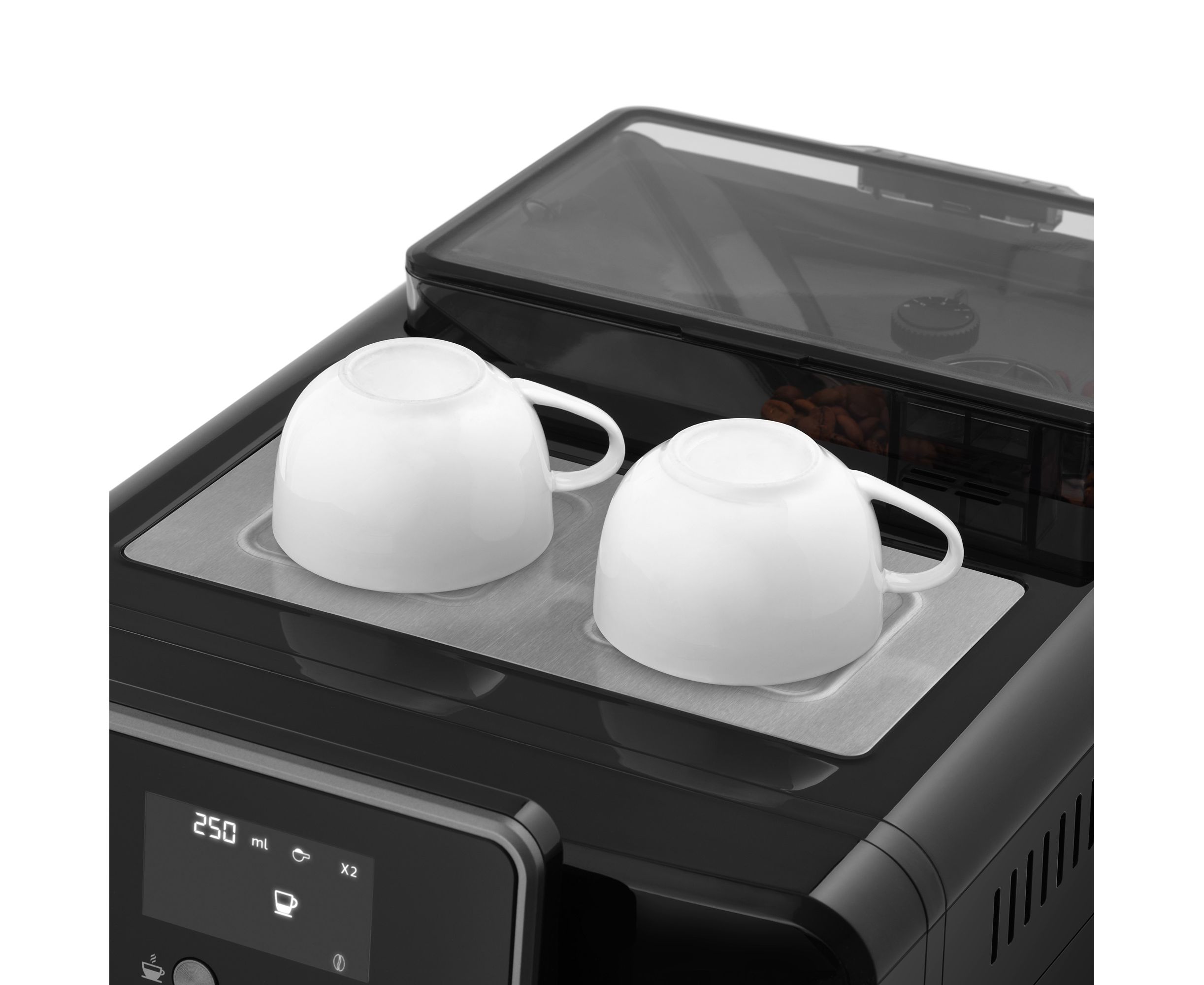 Функционал прибора продуман до мелочей: вы сможете выбрать крепость кофе (9–11 г), его температуру (75°С–95°С), объем молока и плотность пенки, объем напитка (20-250 мл). Комфорту в использовании способствует подсветка кружки и металлическая подставка для ее подогрева.