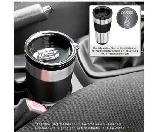 Термостакан из нержавеющей стали с двойными стенками и крышкой с носиком для питья: объём емкость 400 мл.