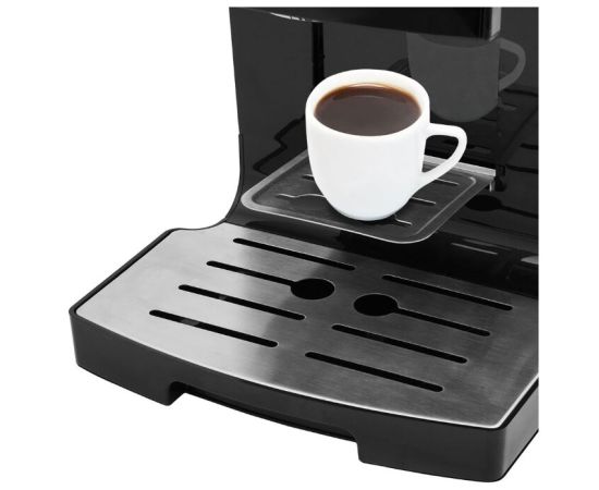 для молотого кофе, давление 19 бар, регулировка порции воды, приготовление капучино, отключение при неиспользовании, корпус из пластика