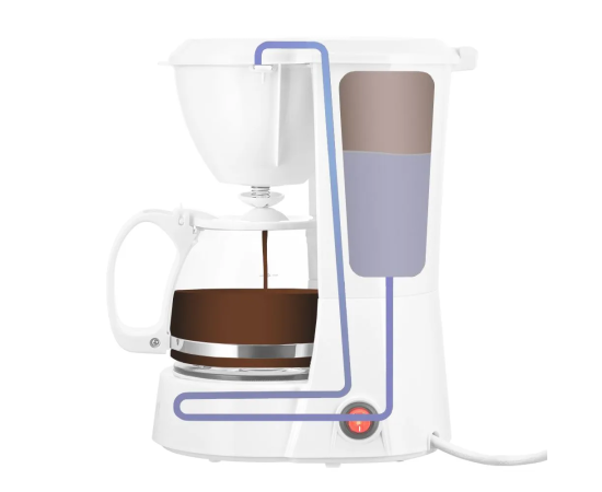 В месте установки кофейника находится платформа для подогрева. При работе кофеварки, включается нагревательный элемент, расположенный под платформой. Благодаря остаточному теплу платформа подогревает напиток в кофейнике некоторое время после выключения.
