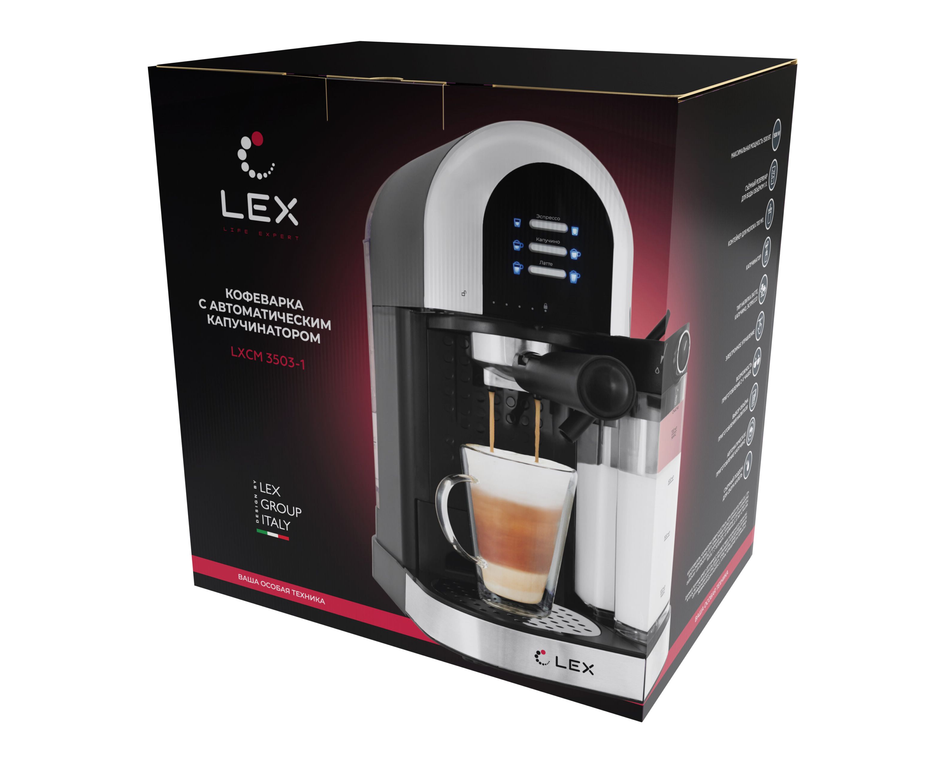 Приготовьте в кофеварке LEX LXCM 3503-1 с автокапучинатором любимые напитки: